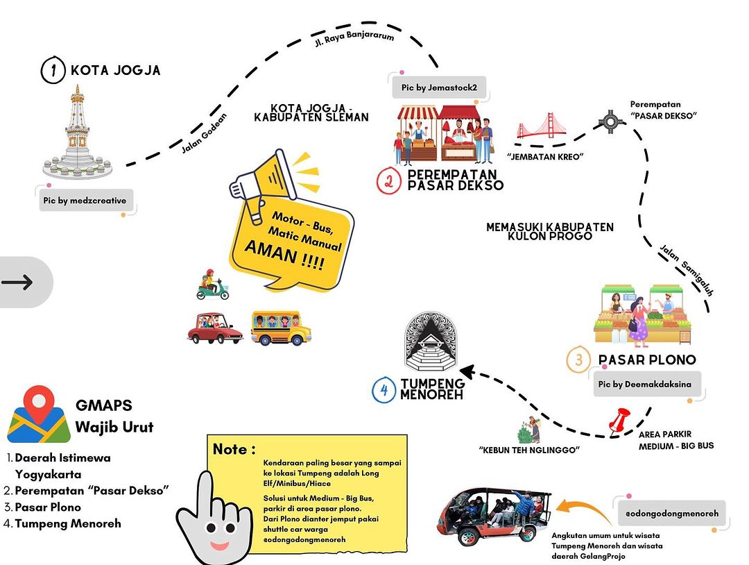 Untuk perjalanan menuju Tumpeng Menoreh kamu wajib lewat arah Kulon Progo atau Jogja yaa. Ini urutannya :